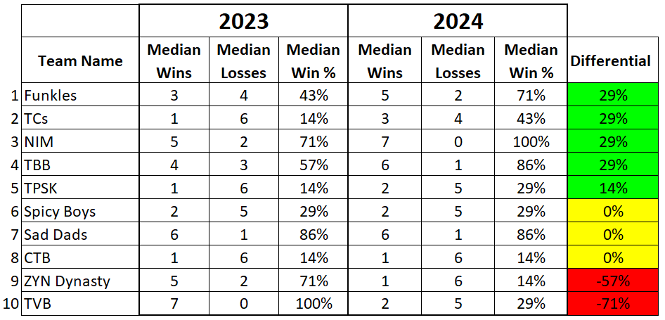 Comparison #2: 2023 Median Standings vs. 2024 Median Standings